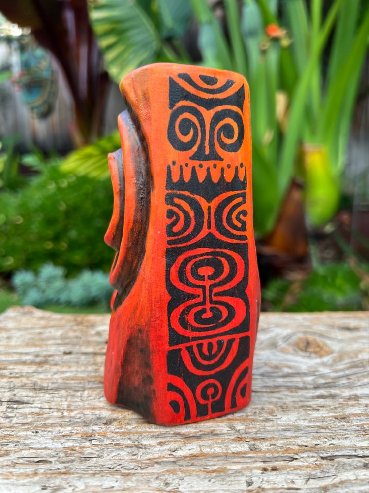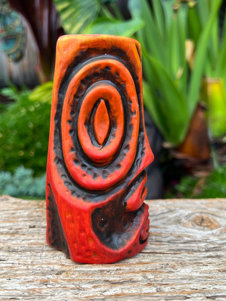 The mini Marquesan, perfect for a Mai tai. Loosely based on Marquesan tiki designs, this little mug is a great daiquiri size. A unique tattoo design on the back brings a custom finishing touch.