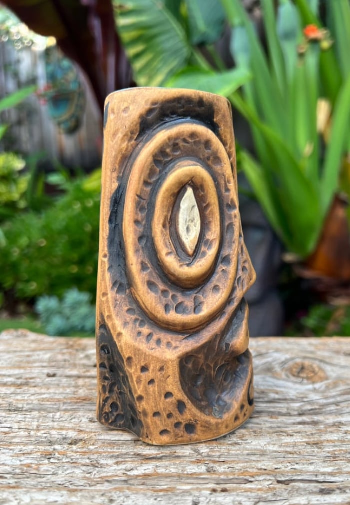 The mini Marquesan, perfect for a Mai tai. Loosely based on Marquesan tiki designs, this little mug is a great daiquiri size. A unique tattoo design on the back brings a custom finishing touch.