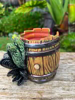 Drifting along the seabed, this barrel has found an unlucky sailor. Conjoined with coral, mussels and seashells this sunken treasure is a tale to behold.